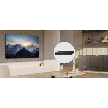 Say goodbye to cluttered cables around your TV. Plug the HDMI cables from your devices like your set top box, gaming console, and soundbar into the Wireless One Connect box, which transmits the signal to the TV wirelessly. You can place it up to 30 feet from the TV, giving you more freedom to keep your devices out of sight and elevate your interior design