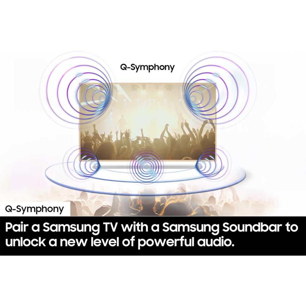 experience with style and features set to impress. Q-Symphony ensures your soundbar and Samsung TV work in harmony.