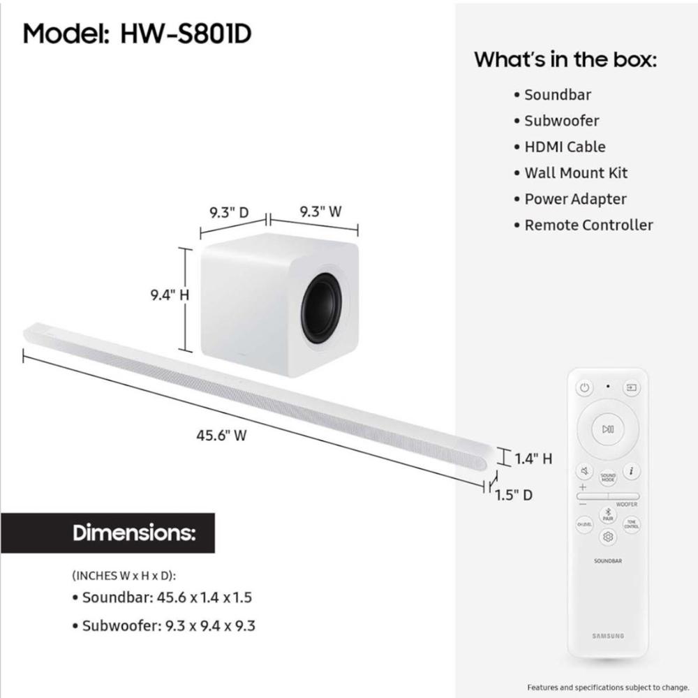 - Samsung HW-S801D 3.1.2ch Wireless Soundbar Dolby Atmos, White (2024)