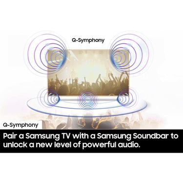 experience with style and features set to impress. Q-Symphony ensures your soundbar and Samsung TV work in harmony.