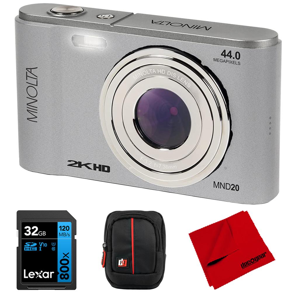 Minolta MND20 44 MP 2.7K Ultra HD Digital Camera, Silver w/ Accessories Bundle