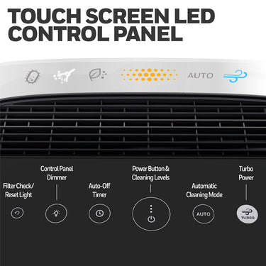 Touch screen LED control panel w/ auto-off timer (Set to 2, 4 & 8 hours)