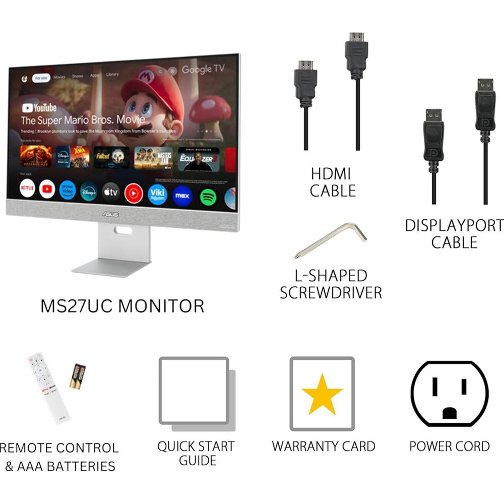 - ASUS ZenScreen 27 4K USBC Smart Monitor MS27UC UHD 3840 x 2160 IPS, 99 sRGB, Google TV, Harman Kardon Speakers, USBC 90W PD, USB Hub, Wireless Display, Netflix and YouTube, 3 yr warranty
