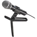 The ATR2100x-USB is a versatile content creation microphone, designed for live performance, podcasting, and voiceover use. This rugged handheld microphone offers two outputs: a USB output that connects to your computer or other device for digital recording, and an XLR output that connects to a sound system’s conventional microphone input for use in live performance. The ATR2100x-USB also offers a high-quality analog-to-digital converter (24-bit, up to 192 kHz) for excellent fidelity, and a headphone jack with level control for direct monitoring from the microphone. Its cardioid polar pattern reduces pickup of unwanted sounds from the sides and rear. The mic includes an on/off switch and comes with two 2 m (6.6') USB cables (USB-C to USB-C, USB-C to USB-A) and a 3 m (9.8') XLRF-to-XLRM cable for maximum versatility. A sturdy tripod desk stand with folding legs is also included for use on tabletops.