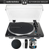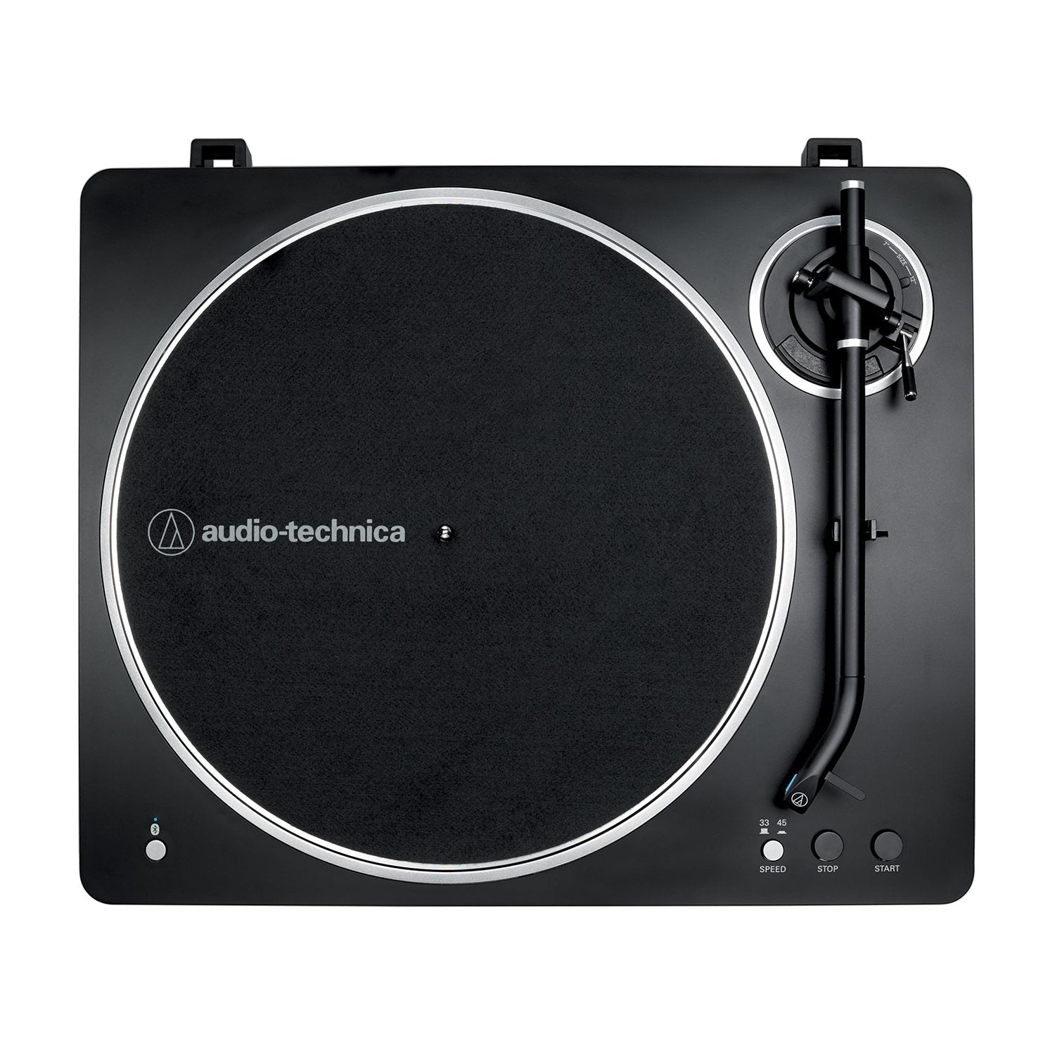 Equipped with Bluetooth wireless technology for simple connection to powered speakers and headphones, the AT-LP70XBT plays 33⅓ and 45 RPM records automatically at the press of a button. And since the J-shaped tonearm features an integrated AT-VM95C cartridge, there’s no installation, balancing or other tonearm setup required