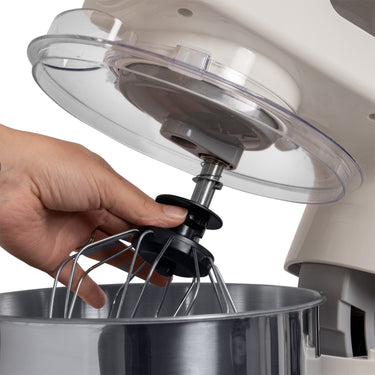 We include essential mixing accessories, each with their own helpful uses - dough hook, flat beater, and wire whip. These are easily detached and swapped while also easy to clean by hand using warm water. Die-cast aluminum attachments and mixing bowl should not be cleaned in a dishwasher or using strong detergents - this can cause oxidation of the components. We also include a 1-Year Limited Manufacturer Warranty.