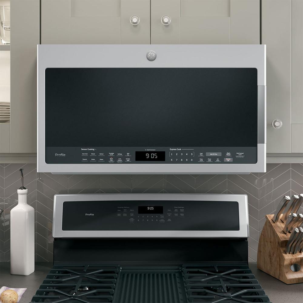 - GE Profile 2.1 Cu. Ft. Over-the-Range Sensor Microwave Oven Stainless Steel