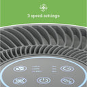 The Holmes® True HEPA 360° Air Purifier features a 360-degree air intake system that efficiently captures air from all around the room to purifiy and release crisp, clean air. With 100 CADR (Clean Air Delivery Rate), this air purifier is ideal coverage for most bedrooms and other medium-sized rooms up to 155 square feet. The 3-Stage Filtration System removes up to 99.97% of airborne pollutants and allergens. The filtration begins with with a prefilter that caputures large particles such as pet hair and dust bunnies. The air then passes through the True HEPA filter, capturing particles as small as 0.3 microns to remove up to 99.97% of airborne particles. Finally, the carbon filter completely eliminates unwanted odors, from cooking smells, fumes, smoke, pets, and other unwanted household scents. The optional ionizer helps to bind smaller particles to form larger particles that are more easily captured. With great features such as 3 speed settings to customize your comfort and a filter reminder light that alerts you when it's time to change the filter, the Holmes True HEPA 360° Air Purifier is the best air purifier for your bedroom. This air purifier meets ENERGY STAR-certified guidelines to ensure energy efficiency