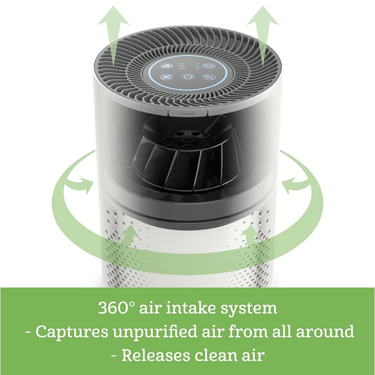 360-degree air intake system efficiently captures air from all around the room to purify and release crisp clean air