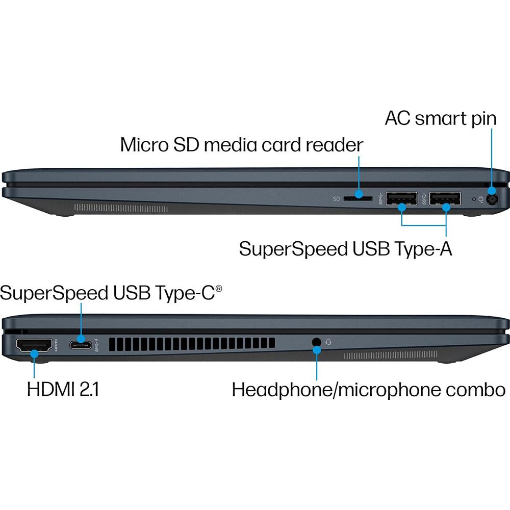 The HP Pavilion x360 Laptop was designed with sustainable materials like ocean-bound plastic and post-consumer recycled plastic.