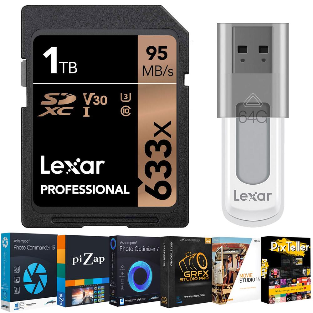 Lexar Professional 633x 1TB SDXC UHS-I/U3 Card+Editing Suite & 64GB Flash Drive