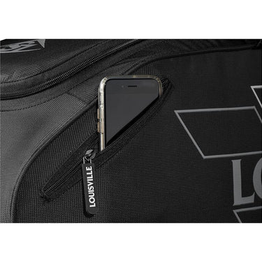 Available in a variety of colors and with a removable customization panel, the Louisville Slugger Omaha Wheeled Rig is a must-have for serious ballplayers. A zippered bat compartment comfortably fits four bats and the main compartment houses a helmet, gear and your glove. An interior L Bracket helps your bag last longer with inline wheels and integrated fence hooks for easy transport and storage.