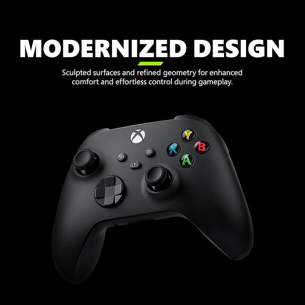 Experience the modernized design of the Xbox Wireless Controller - Carbon Black, featuring sculpted surfaces and refined geometry for enhanced comfort and effortless control during gameplay.