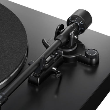The damped base construction provides reduced low-frequency feedback coloration, while the die-cast aluminum platter with a felt mat controls resonance to reduce unwanted vibration.
