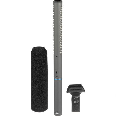 Audio-Technica's AT897 is designed for field audio acquisition in film/TV/video production, professional recording, wildlife recording and broadcast applications. It mounts conveniently on a DV camcorder without adding noticeable heft, and remains out of the frame even with compact digital cameras. This high-performance short shotgun offers outstanding long-distance audio pickup due to narrow acceptance angle of line + gradient design. It also features smooth, natural-sounding on-axis audio quality and excellent off-axis rejection of sound arriving from the sides and rear of mic.
