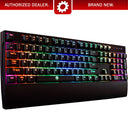 Full of function, this RGB keyboard offers stunning RGB color with 6 different pre-programmed color modes. You can customize these color modes to your own specification or change the directions of each pattern. This beautiful keyboard also features a slick and black design with an ergonomic slope. Topped with an attractive carbon fiber design, the fixed palm rest relaxes your wrists and keeps you in the game longer.