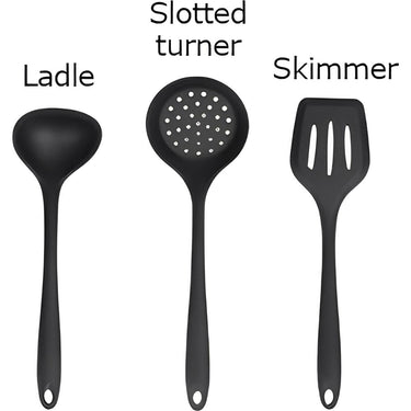 To round out the set, you'll find a versatile 3-piece kitchen tool kit—including a slotted turner, spoon, and 2-prong fork—each made of premium stainless steel for added convenience and durability in the kitchen. This cookware collection combines functionality, resilience, and sleek design, making it a standout addition to any cooking space.