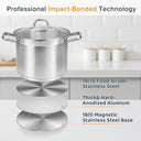 Experience exceptional performance and durability with this professional-grade stainless steel cookware set. Each pot and pan is constructed using impact-bonded technology, where multiple layers are fused under intense pressure—up to 1,500 tons—for superior strength and lasting heat conductivity. A magnetic stainless steel base ensures full compatibility with induction cooktops, along with gas, electric, ceramic, and infrared surfaces.