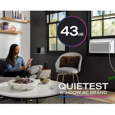 This quiet air conditioner reaches sounds as low as 43 dB, underlining GE Profile's rating as the Quietest Window AC Brand. (Based on avg sound ratings by brand of 5K-24K BTU cooling only Window AC from publicly available info, compared to 74% of the product in the US Window AC category per Traqline 9/23)