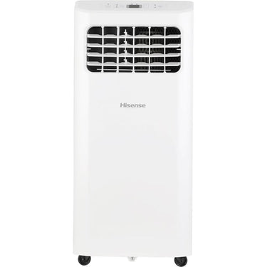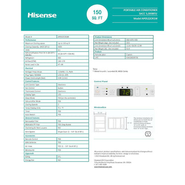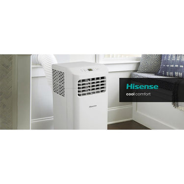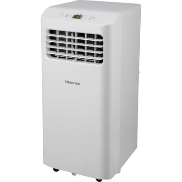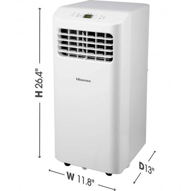 The Hisense AP0522CR1W Portable Air Conditioner is best suited for smaller rooms (150 sq. ft. or less), delivering 5000 BTU of cooling power. It provides three modes of comfort cooling, fan, or dehumidifier allowing you to choose the comfort you want at any time. The convenient drain-free design means you never need to worry about removing condensed moisture, and its compact size is just right for rooms with limited floor space. Smooth, intuitive electronic controls and included remote control put easy operation right at your fingertips.