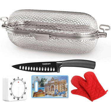 Napoleon Rotisserie Grill Basket Stainless Steel with 6" Chef's Knife Bundle