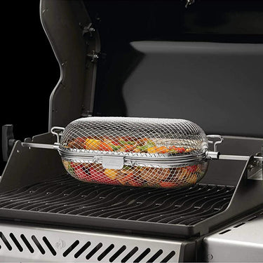 The rotisserie action ensures even cooking on all sides while gently tumbling the delicious contents over your cooking grids.