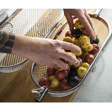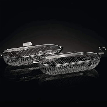 Things just taste better when they're barbecued and with the Napoleon Rotisserie Basket it's easy to make wings, french fries, and so much more right on the grill. The Rotisserie Basket's rod ports fit most rotisserie rod styles and lock in place with the thumb screws. Once you've created the most delicious wings, crispiest fries, and grill roasted veggies without the addition of oil, the stainless steel baskets clean up easily, then nest for space saving storage.