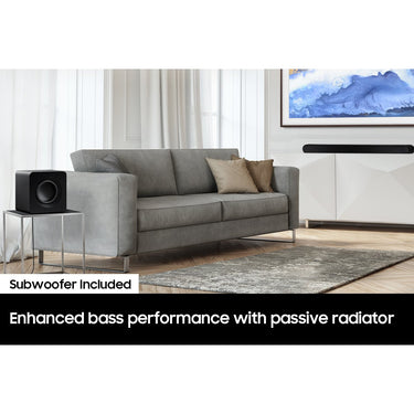 Designed to complement the Sseries soundbar, the W510 subwoofer brings the sound even deeper. With a passive radiator, you can feel deeper bass even in a compact 6.5" size.