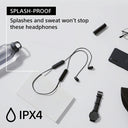 With an IPX4 water resistance rating, splashes and sweat won't stop these headphones -- so you can keep on moving to the music.
