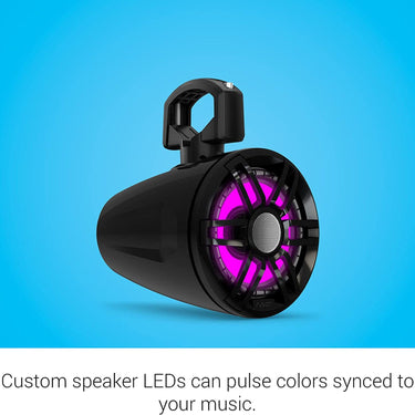 - Custom speaker LEDs pulse colors synced to your music or vehicle speed