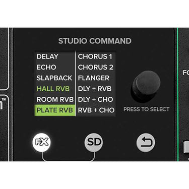 Every Onyx model is equipped with Studio Command, a full-color display and single knob interface for managing built-in FX and SD card file browsing/recording/playback.