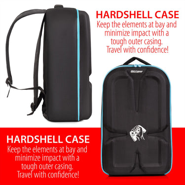 The Deco Gear Playstation 5 Case and Travel Backpack offers an easy way to transport your prized game console safely. Comfortable, secure, and designed for your PS5 console specifically, the tough outer hard case shell keeps out elements and impacts while the specifically cut foam protects and cradles the contents inside. Store consoles, games, accessories, headsets, battery packs, and everything else you need to game on the go!