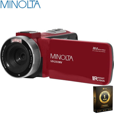 Minolta MN260NV 1080P FHD / 30 MP Night Vision Camcorder; Red Open Box + 1 Year Warranty