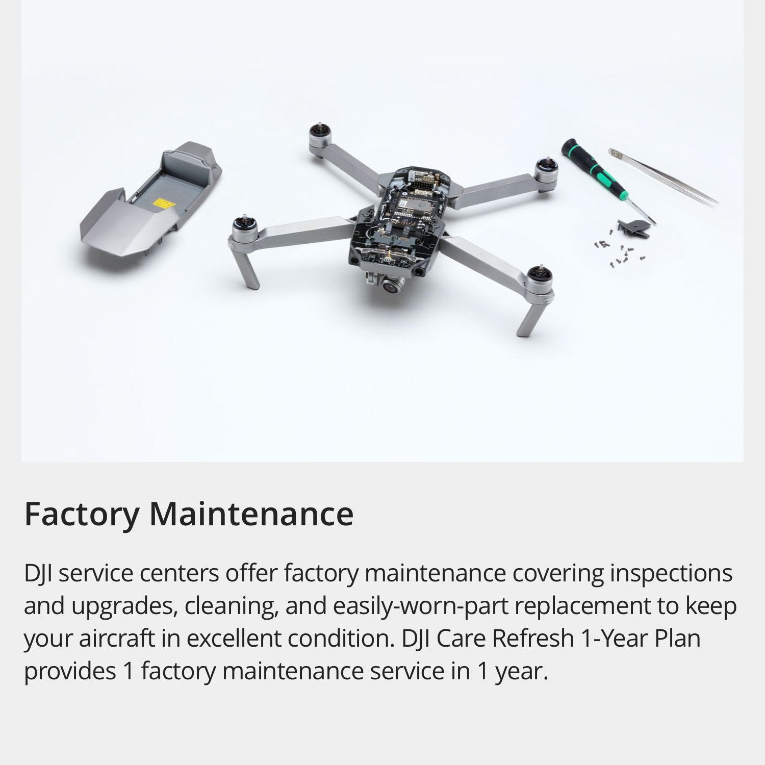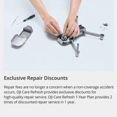 For a small additional charge, DJI Care Refresh (1-Year Plan) provides two replacement units within one year, covering crashes, water damage, natural wear, and other accidental damage. Other exclusive services include global service and support, rewards for safe use, free two-way shipping, exclusive technical service, and more.