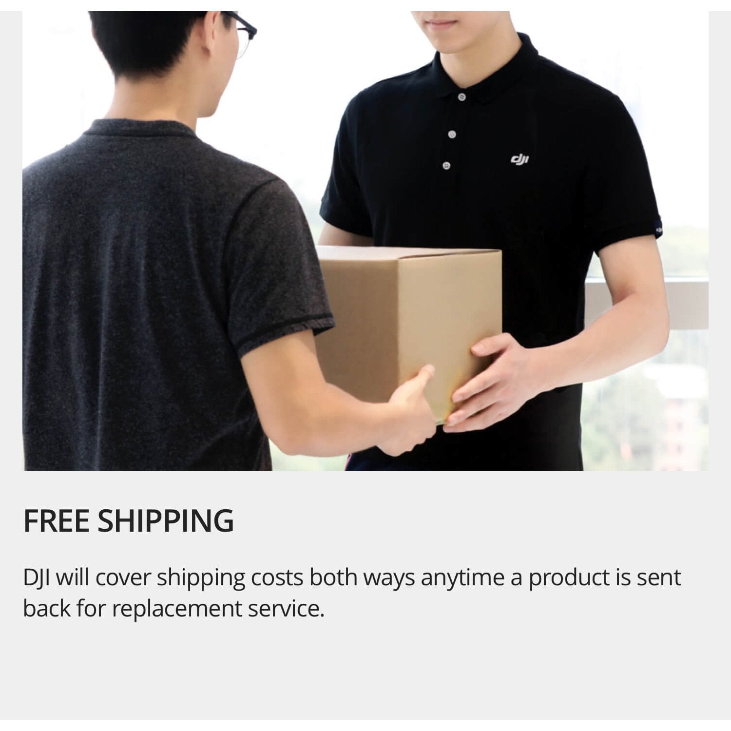 DJI will cover cost both waysanytime a product is sent back for replacement service.