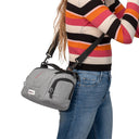 Organize your essentials effortlessly with two 4.5” x 5.5” side zippered pockets, complete with a mesh pocket divider for seamless storage. The sturdy carry handle and adjustable, removable shoulder strap with quick clips offer versatile carrying options, adapting to your on-the-go lifestyle.