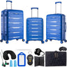 Rockland Hardside Spinner Wheeled 3Pcs Luggage Set Blue 19",23",27" + Travel Kit