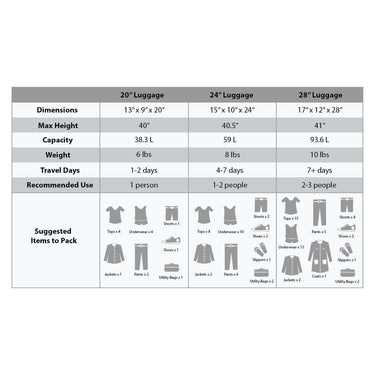 - Carry-on Upright: 22"x 14"x 9" (with wheels)