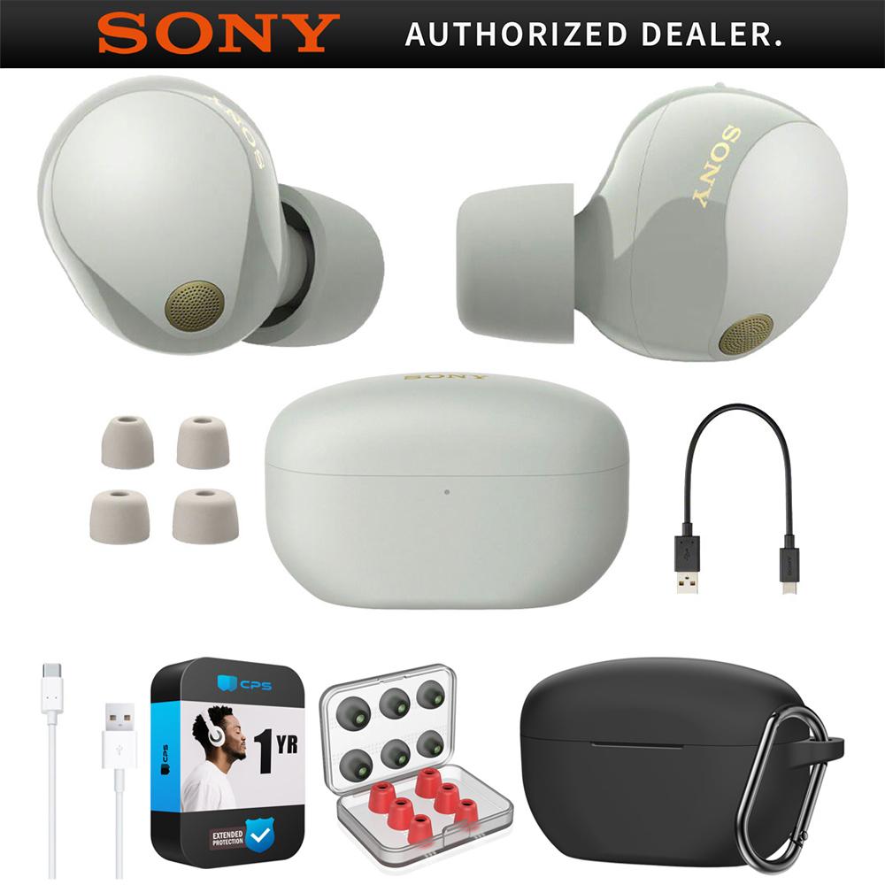 Sony Noise Canceling Truly Wireless Earbuds, Silver + Accessories + Warranty Bundle