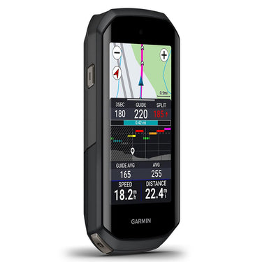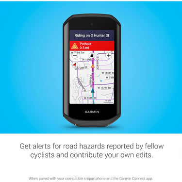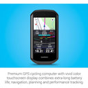 The premium Edge 1050 cycling computer features a vivid color touchscreen display so you can see your maps and stats in stunning detail. And to make sure you never stop cycling, it has up to 20 hours of battery life in the most demanding use cases and up to 60 hours in battery saver mode. Get alerts for road hazards reported by fellow cyclists, and for group rides, see in-ride messaging, leaderboards and more when used with your compatible smartphone and the Garmin Connect™ app. When it’s time to focus on individual training for a race or personal goal, Edge 1050 delivers. It works seamlessly with our free Garmin training plans for cyclists. Event adaptive training delivers personalized workouts that adapt to your performance, recovery and more when riding with your compatible power meter and heart rate monitor. A built-in speaker delivers clear workout and navigation prompts plus a bike bell so you can alert riders and pedestrians. This cycling computer also has Garmin Pay™ contactless payments (with a supported bank), making that postride latte a little sweeter. From Saturday group rides to solo long ones, improve every ride with the Edge 1050 premium cycling computer and its incredible performance insights, in-ride competitions and free personalized coaching.