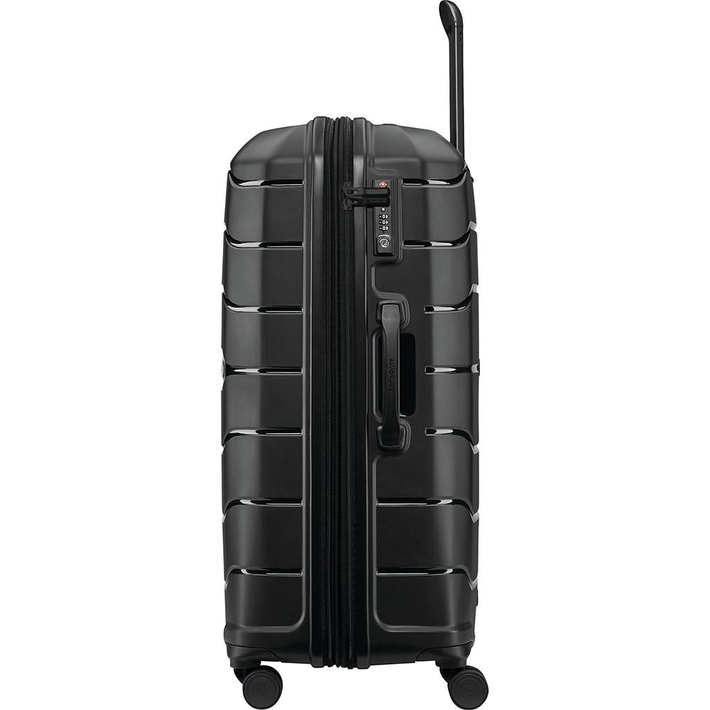 Side mounted TSA-approved combination locks on the luggage secure belongings, offering peace of mind. With no keys required, travelers can easily set their desired code, ensuring security when their luggage is out of sight.