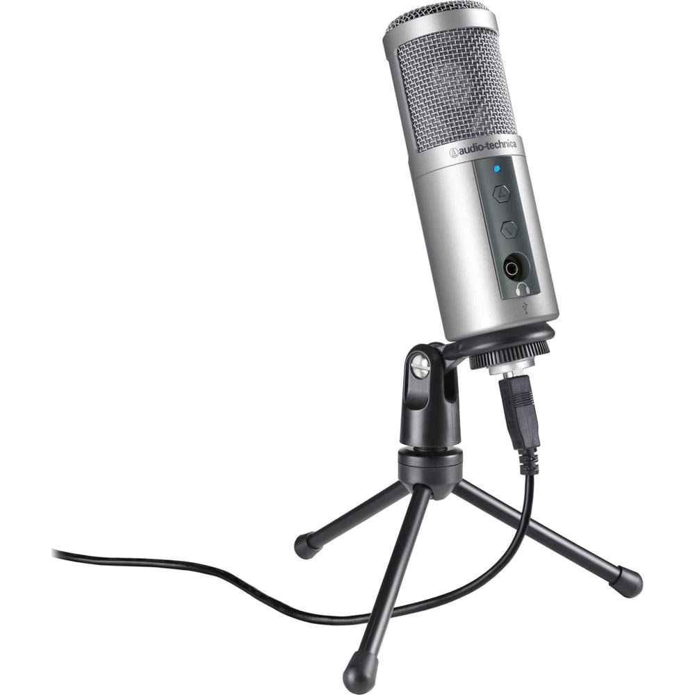 - The Audio-Technica ATR2500-USB Cardioid Dynamic USB Microphone is ideal for podcasting, home studio recording, field recording, and voiceover use. It plugs right into your computer USB port, and functions seamlessly with your favorite recording software.