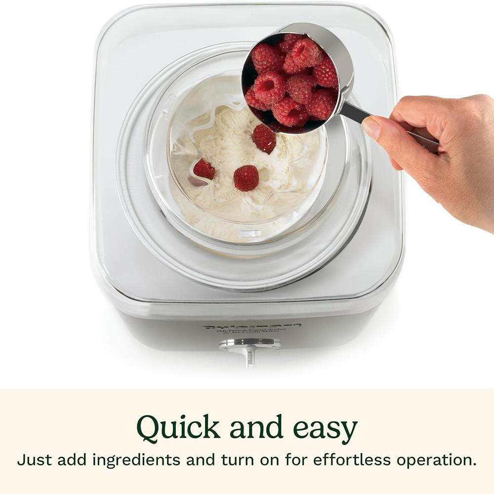 - This fully automatic frozen yogurt-sorbet and ice cream maker features a brushed stainless steel housing, a large ingredient spout and a heavy-duty motor capable of making frozen desserts or drinks in as little as 25 minutes.