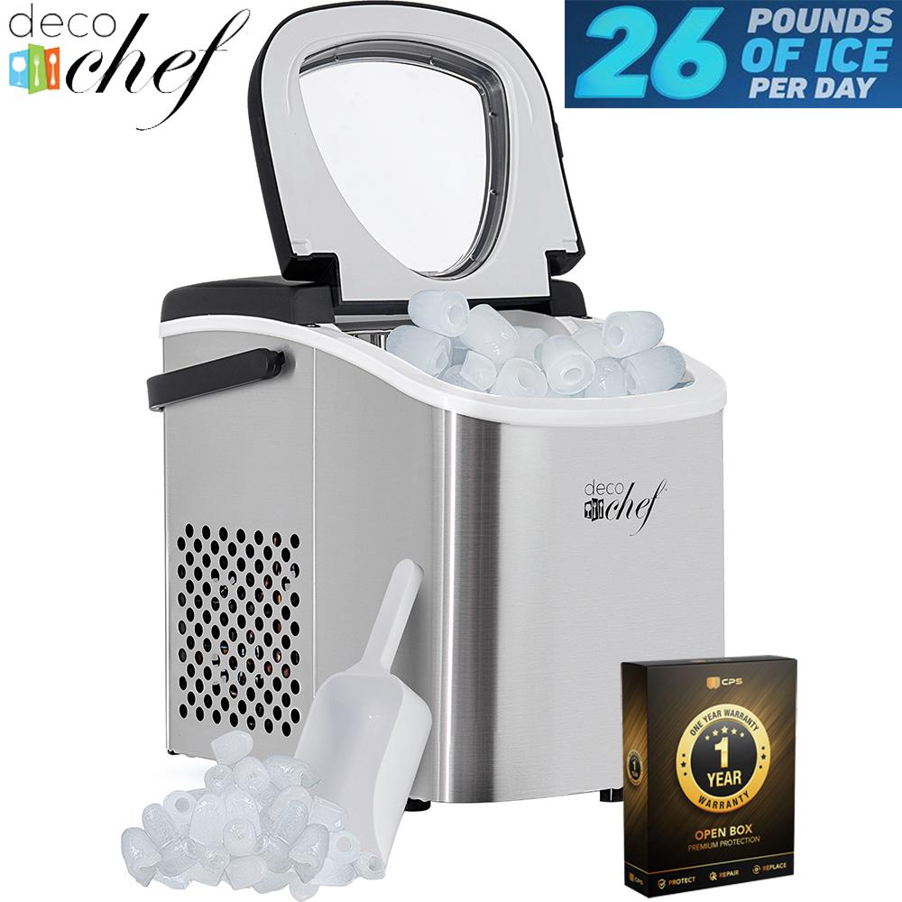 - Deco Chef Compact Countertop Ice Maker 26LBs in 24HRs, 9 Ice Cubes in 6 Minutes, Stainless