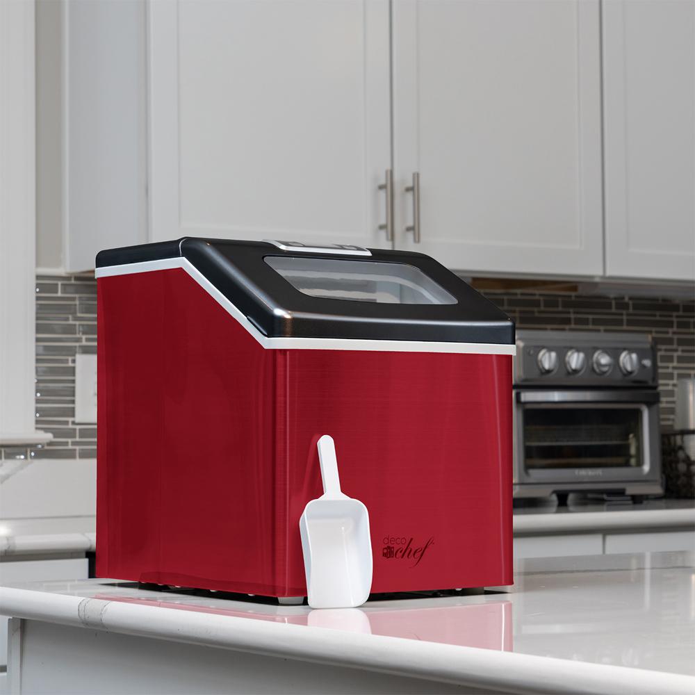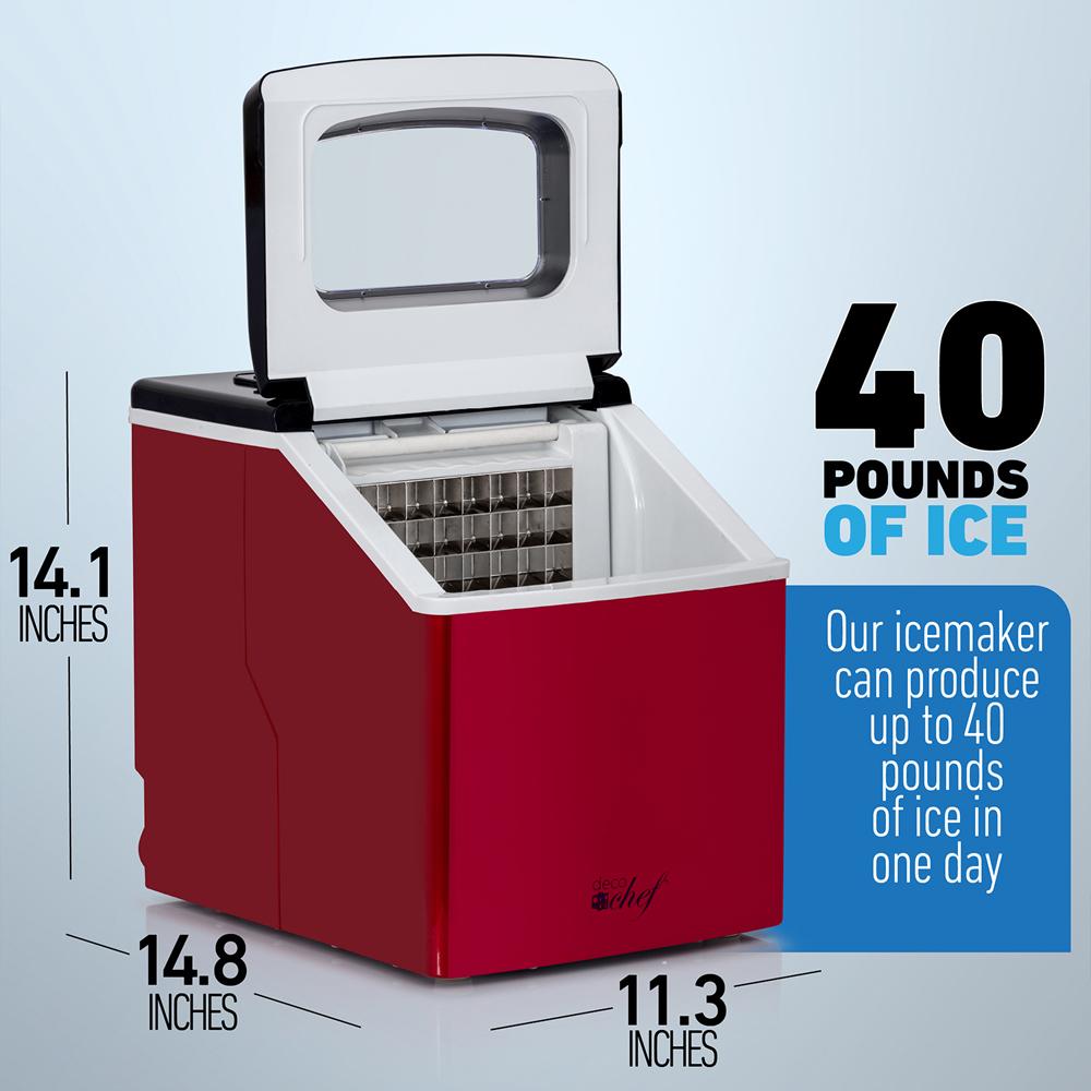 - Deco Chef Countertop Portable Ice Maker for Home or Office, 40 lb/Day, Red with Black Lid