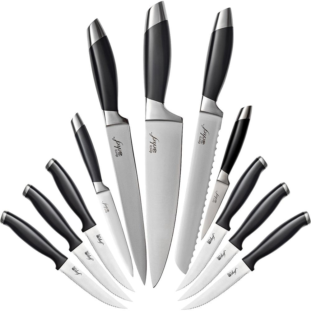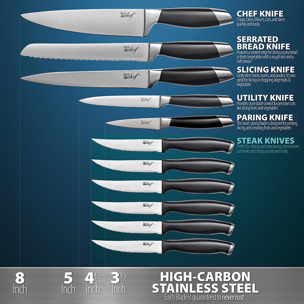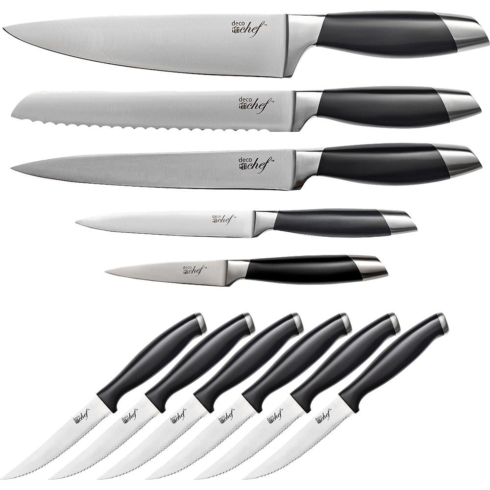 Deco Chef Gourmet 12 Piece Stainless Steel Knife Set with Storage Block Open Box
