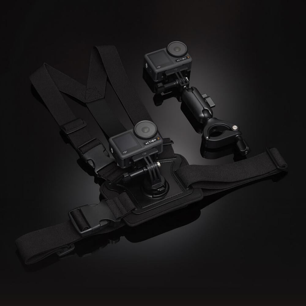 - Kit Includes: Osmo Action Chest Strap Mount, Osmo Action Handlebar Mount, Osmo Locking Screw (x2)