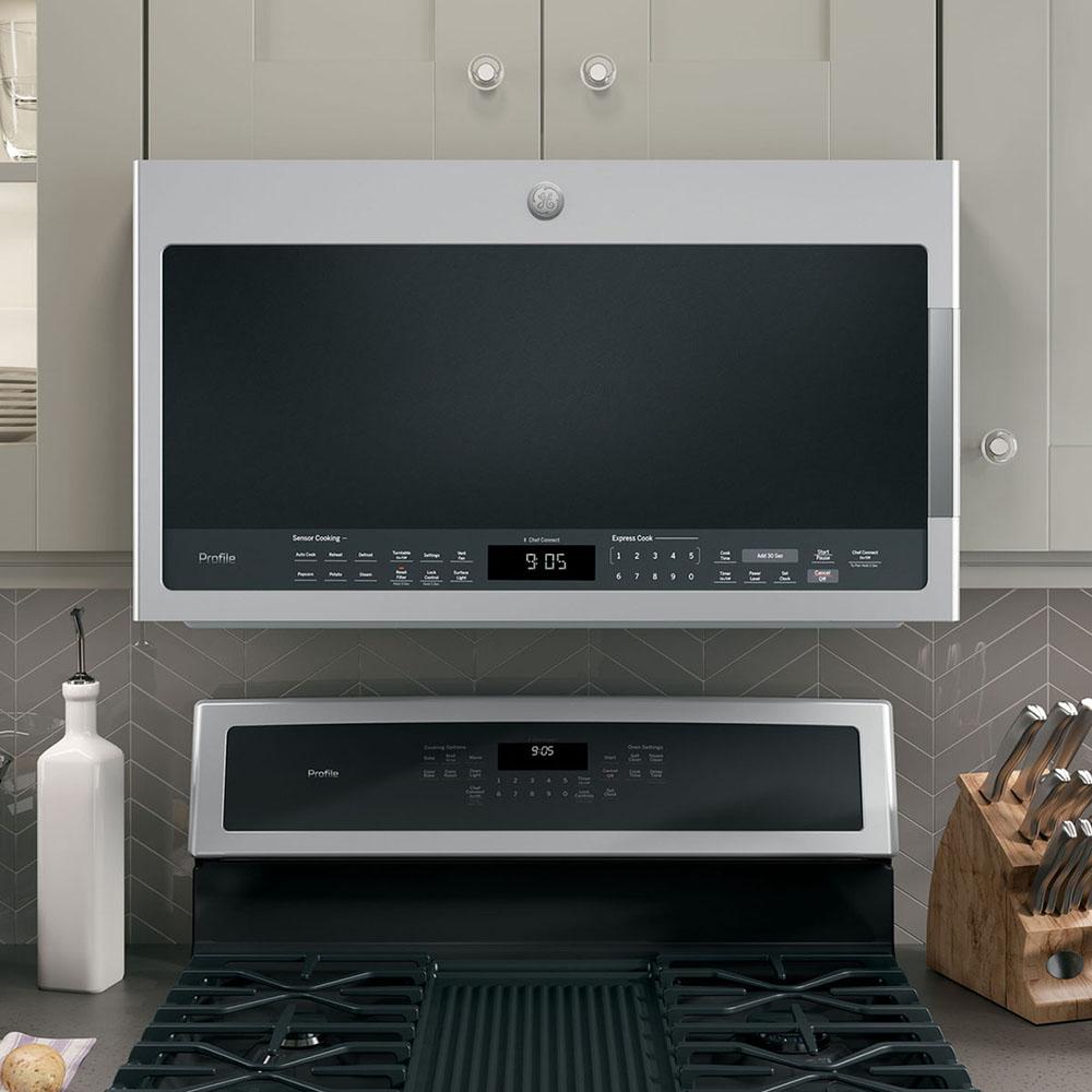 - GE Profile 2.1 Cu. Ft. Over-the-Range Sensor Microwave Oven, Stainless Steel - Open Box