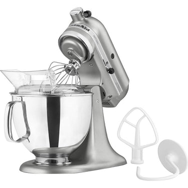 - Artisan Series Tilt-Head Stand Mixer with Silver finish has a 325-watt motor, 5 quart stainless steel bowl with comfort handle, pouring shield and a tilt-back mixer head design