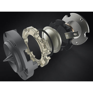 Klipsch exclusive Linear Travel Suspension (LTS) aluminum tweeter minimizes distortion for enhanced, detailed performances. Using Kapton, an extremely light and rigid material, in the tweeter suspension provides high efficiency and improve resolution and detail. LTS tweeters are a hallmark of Klipsch speakers, making them some of the speakers in the world.
